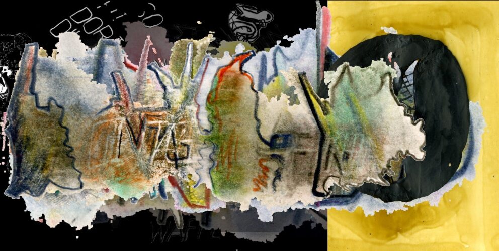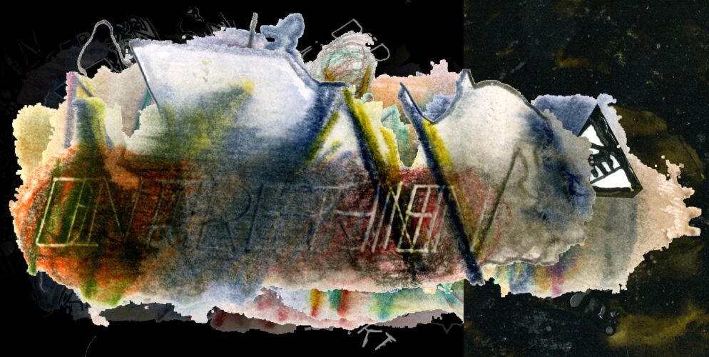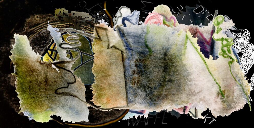 Gestern und heute gingen die Buchmalereien von den Strukturen aus, die der Satz: „Er lebt so in den Tag hinein.“, bietet. Die szenischen Kompositionen, die sich aus Auflösung und Neuformierung bildeten, würde ich gerne noch auf Rolle 11 übertragen. Die aber wandert nun zur Ausstellung im Tibethaus. Deswegen werde ich alsbald vorgreifen und mit Rolle 12 beginnen. Später kann ich den aktuellen Transparentpapierstreifen mit dem entstandenen Material beenden.