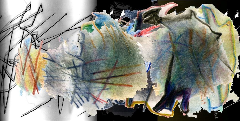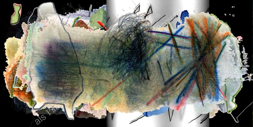 Es gibt eine Sehnsucht nach Schriftlichkeit, die die Bewegungen begleitet, die der Körper gestaltet. Eigenartigerweise geht es bei diesen zielfreien Suchgängen um Präzision, um genaues Hinschauen. Der Abdruck meiner rechten Handkante erzählt Geschichte(n), Geh-Schichten. Dringt mein Blick dort ein, wird die Bewegung des Stiftes von der Hand in Gang gesetzt. Die folgt dem Gang der Worte. Der Weg zieht die Silben zusammen. Die Gesänge aus Annes Roman treffen an der nächsten Kreuzung auf die vorsichtigen Worte meines IM „Lutz Lange“.