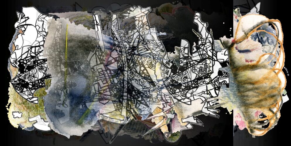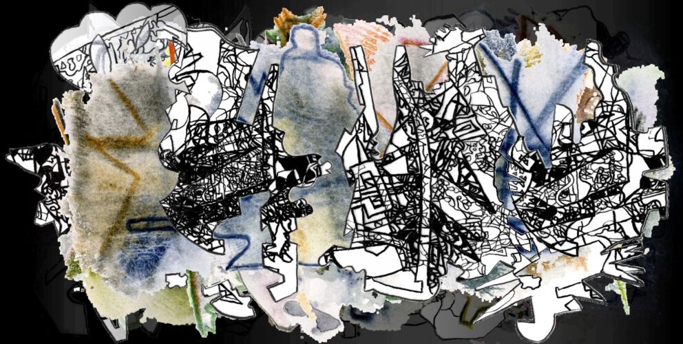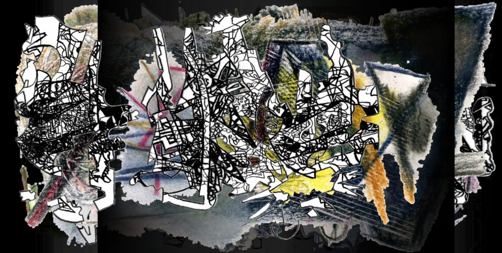 Gestern drehte ich den Zeitpfeil auf Rolle 11, wodurch sich die Zeichnungen von gestern mit den vorigen im Rückwärtsrollen überlagerten. Je länger ich die Szenen in dieser entgegengesetzten Richtung durchzeichne, umso inflationärer wird die Verdichtung. Diese Geschwindigkeit nimmt noch einmal zu, wenn ich die Richtung wieder auf die Gegenwart zu wechsele.