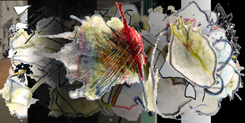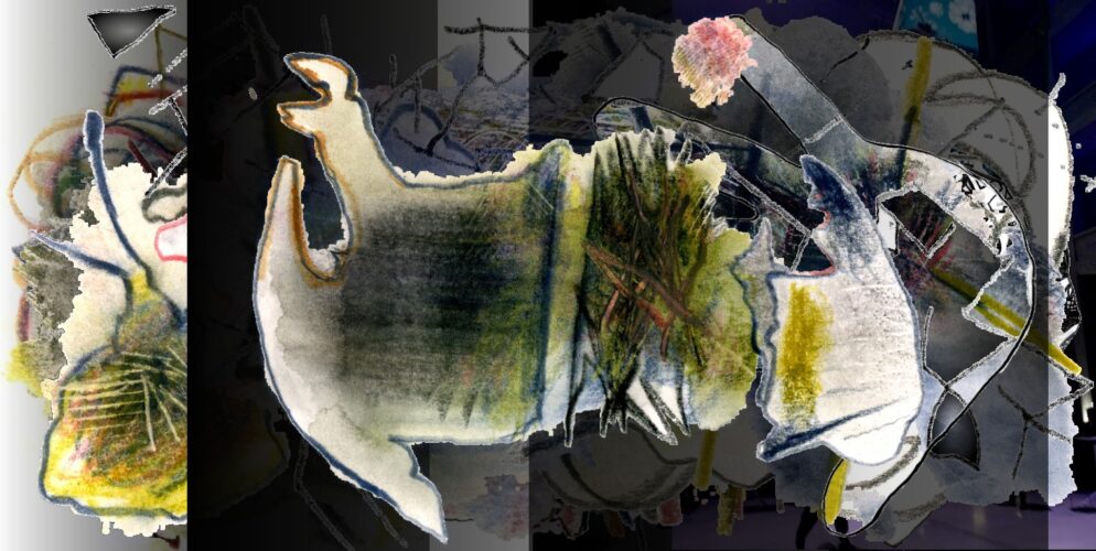 Mein Handumriss beginnt nun eine wichtigere Rolle zu spielen. Er grenzt Felder in den Collagen ein und tritt in Beziehung zu den Buchmalereien. Aus diesen Arbeitsbereichen möchte ich mich nun langsam an die Berlinwanderung herantasten. Die Handprintwanderungen der vergangenen Jahrzehnte, sind einfacherer Natur gewesen. Sie waren nicht so mit Geschichte aufgeladen und folgten spontanen Eingebungen.