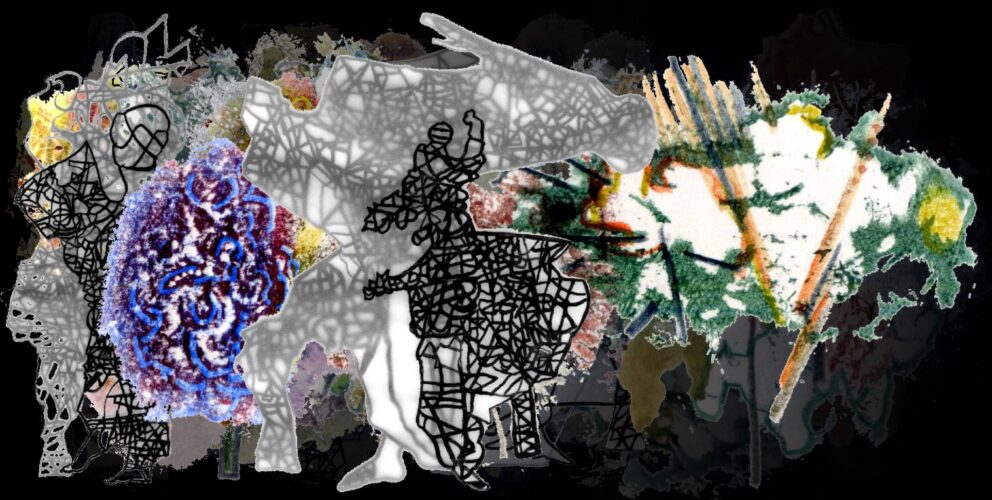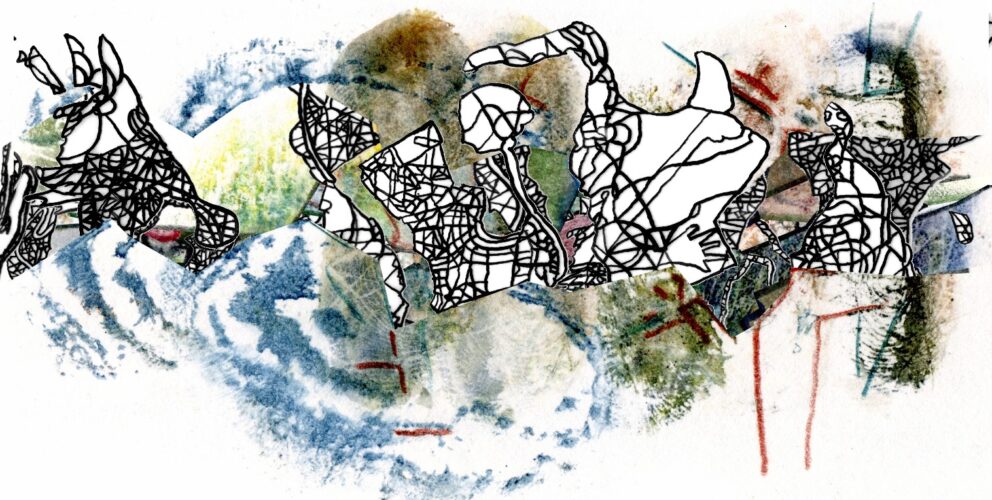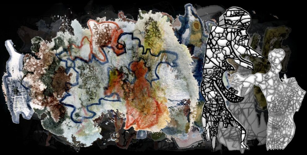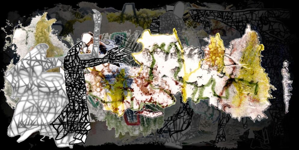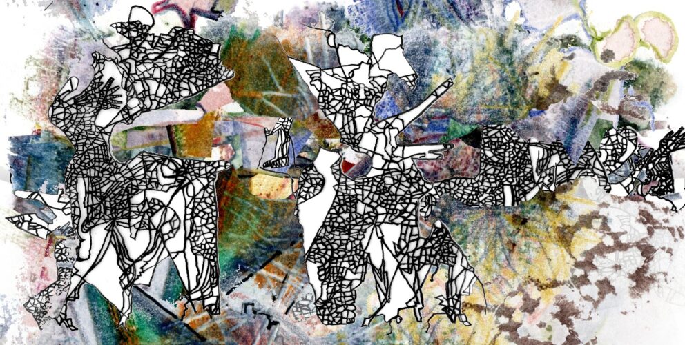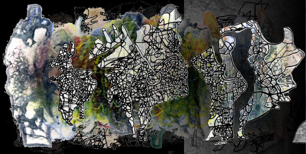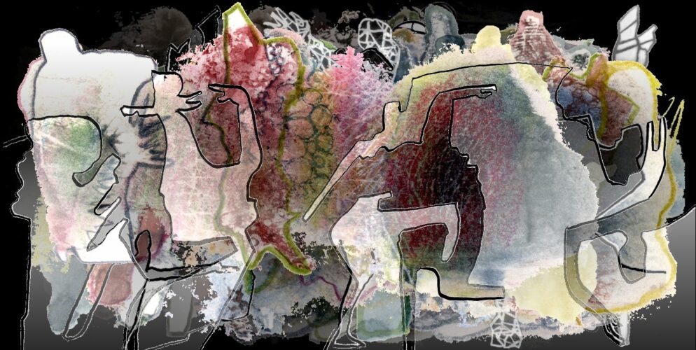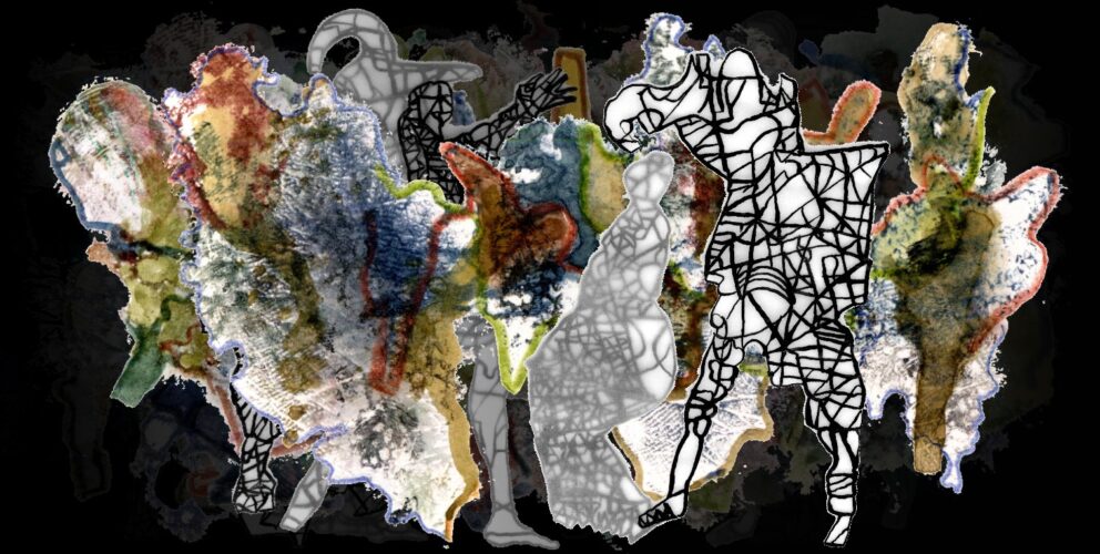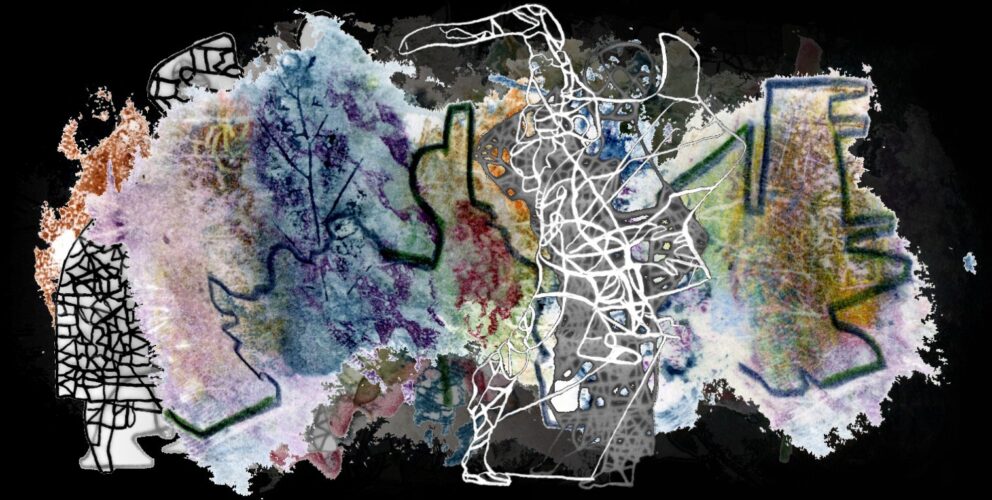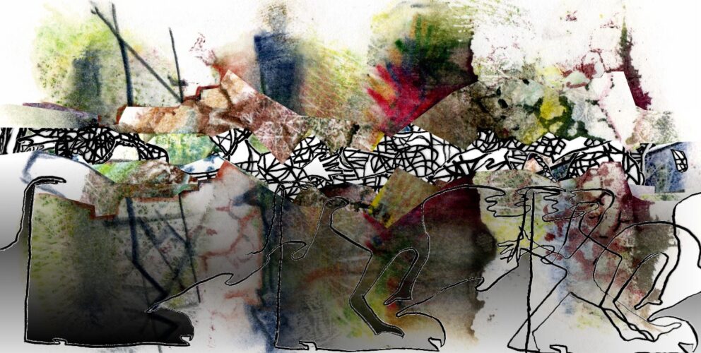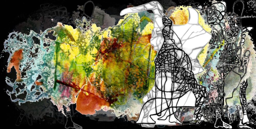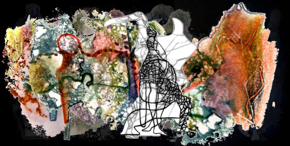 Diagonal über die Wiese des Gustavsburgplatzes, zum Stamm der Vaganteneiche hin, bildet sich ein Pfad, den ich fast täglich viermal begehe, um dem Baum zuzuhören. Manchmal spricht er schon im Näherkommen, und gleich bei der Ankunft kann das aktuelle Wort aufgeschrieben werden. Bei Ursula Krechel las ich gestern von den Lautmalereien die Kurt Schwitter in einem englischen Internierungslager schrieb. Die Worte des Baumes wären auch beziehungsreiche Sockelgestaltungen für die Tanzfiguren.
