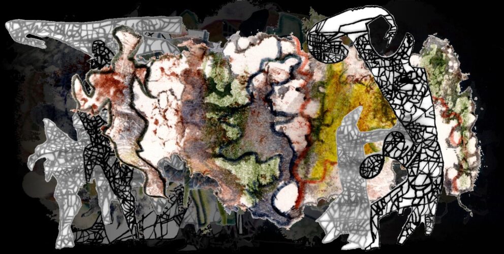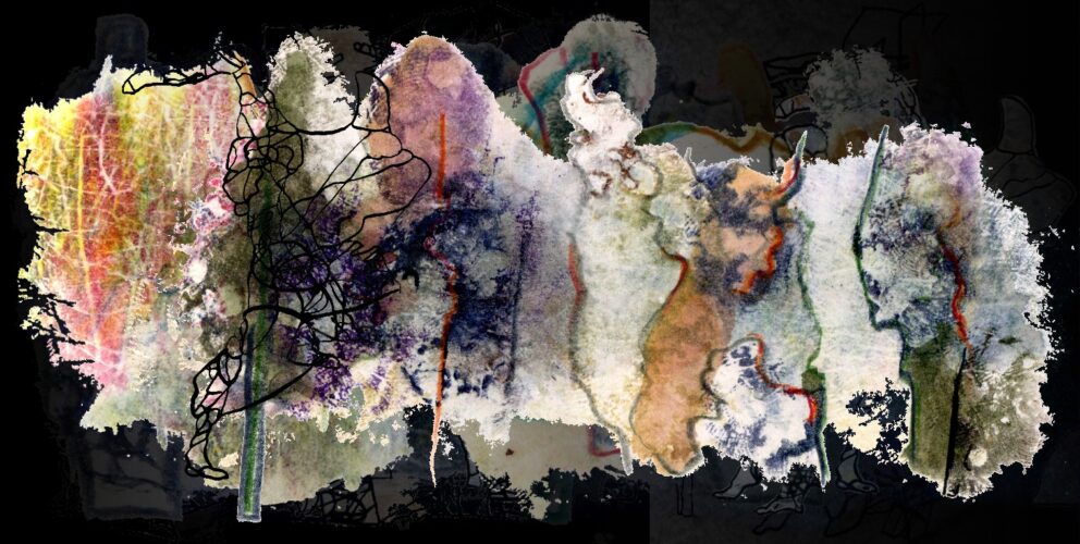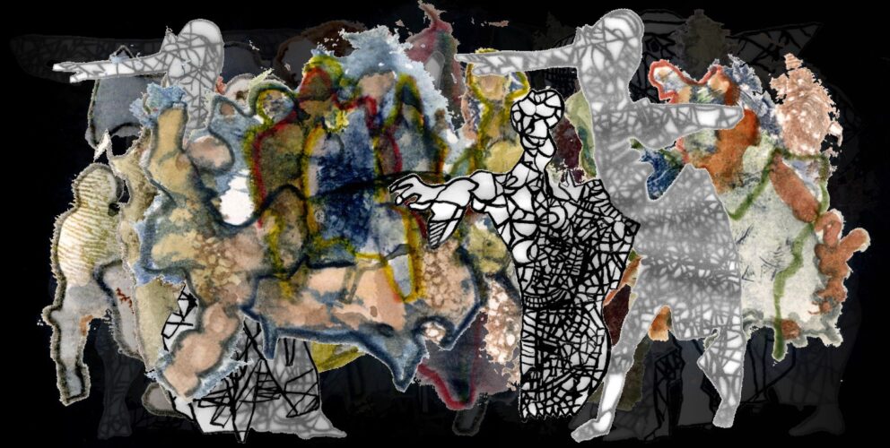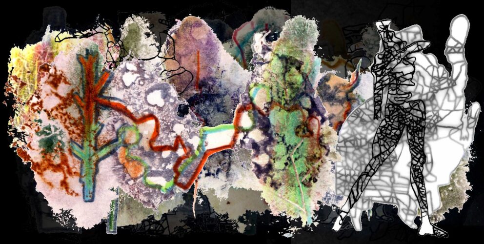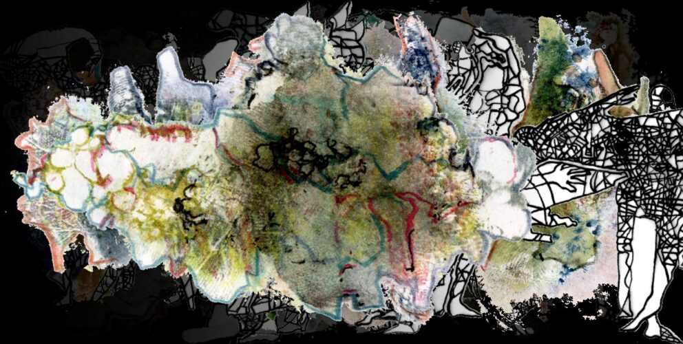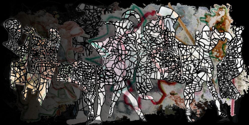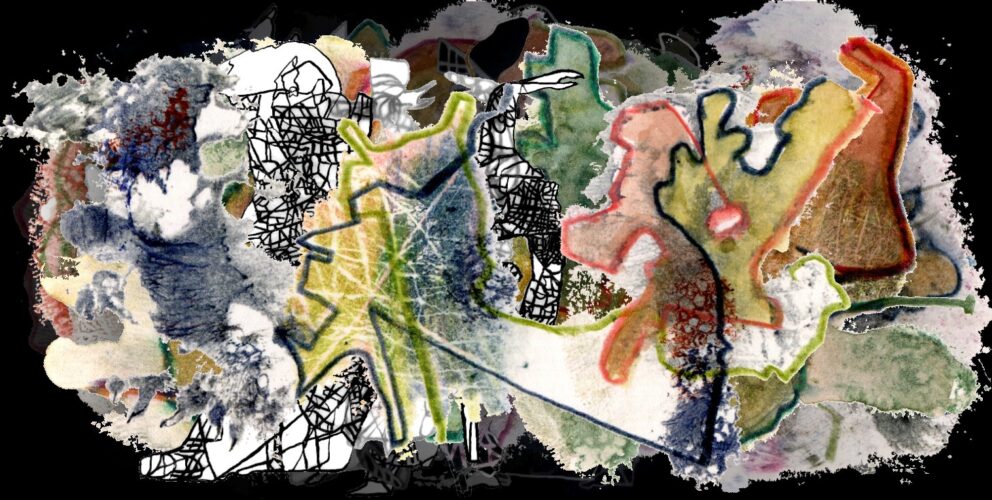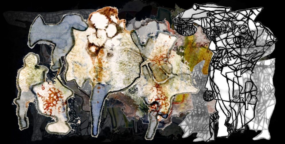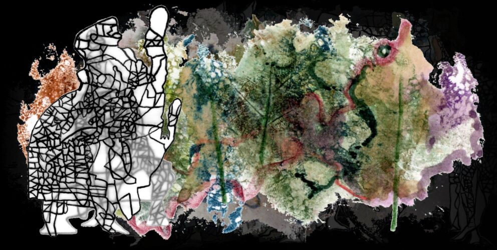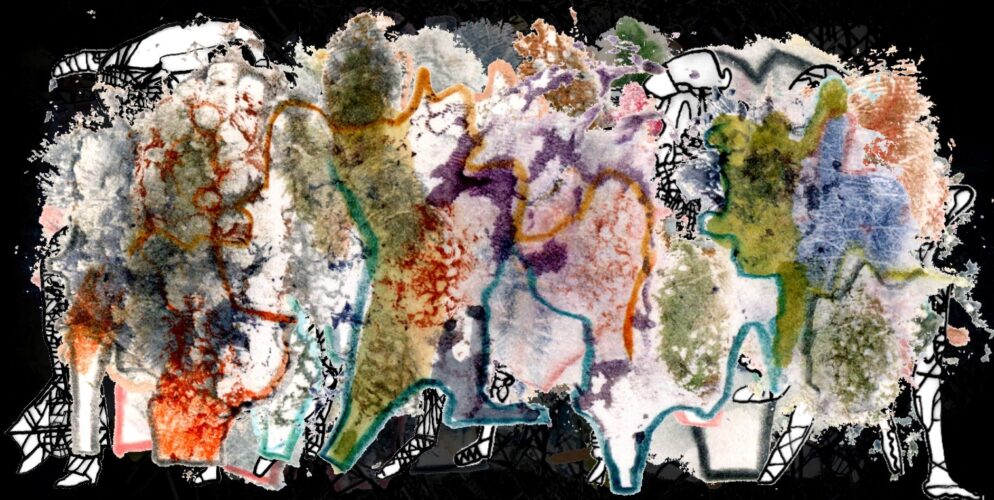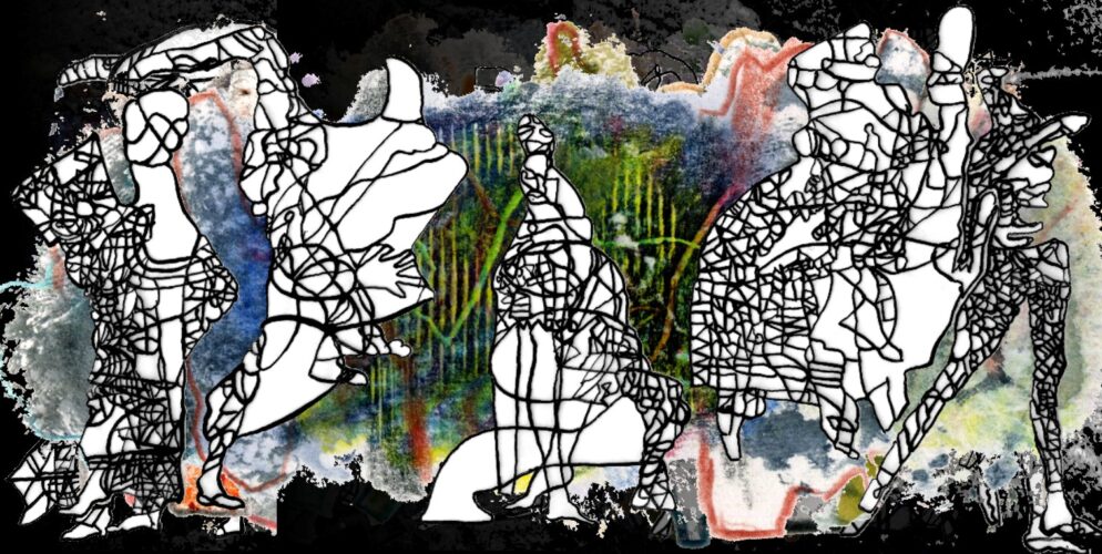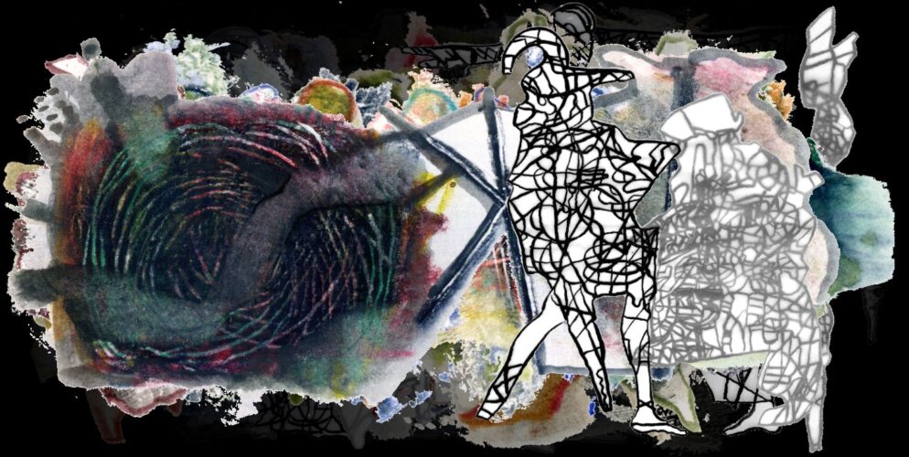 Diagonal über die Wiese des Gustavsburgplatzes, zum Stamm der Vaganteneiche hin, bildet sich ein Pfad, den ich fast täglich viermal begehe, um dem Baum zuzuhören. Manchmal spricht er schon im Näherkommen, und gleich bei der Ankunft kann das aktuelle Wort aufgeschrieben werden. Bei Ursula Krechel las ich gestern von den Lautmalereien die Kurt Schwitter in einem englischen Internierungslager schrieb. Die Worte des Baumes wären auch beziehungsreiche Sockelgestaltungen für die Tanzfiguren.