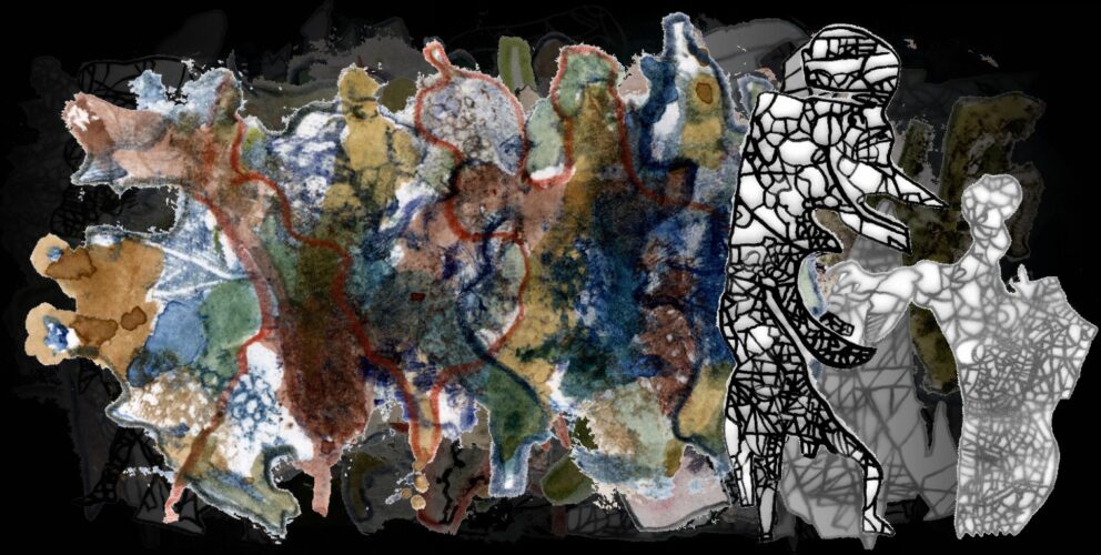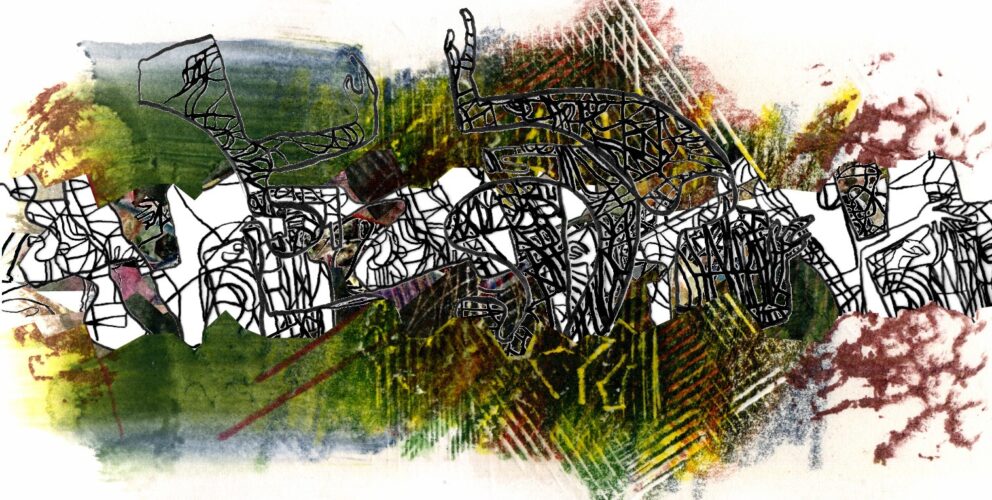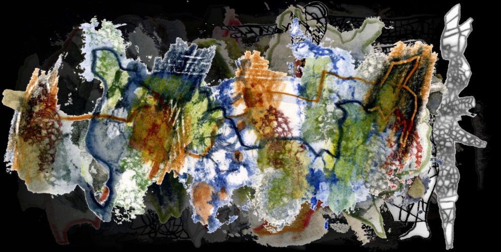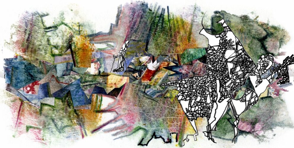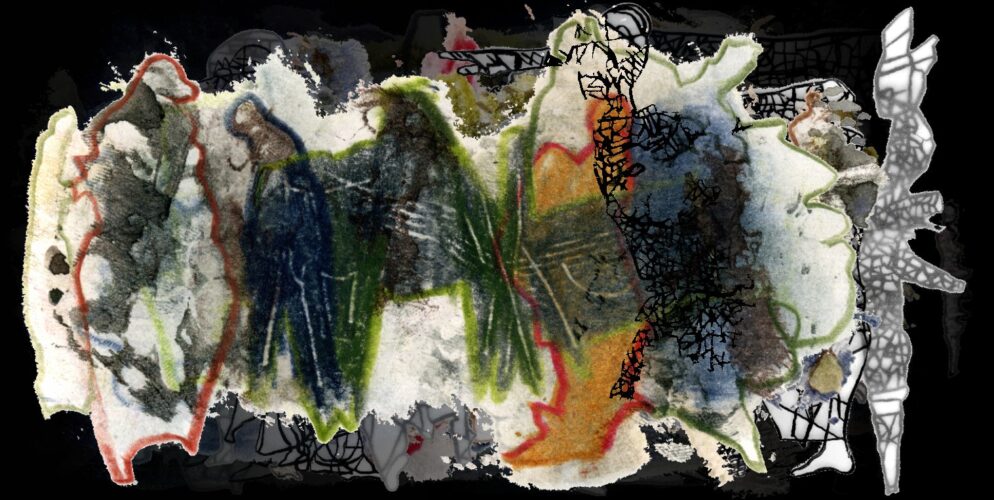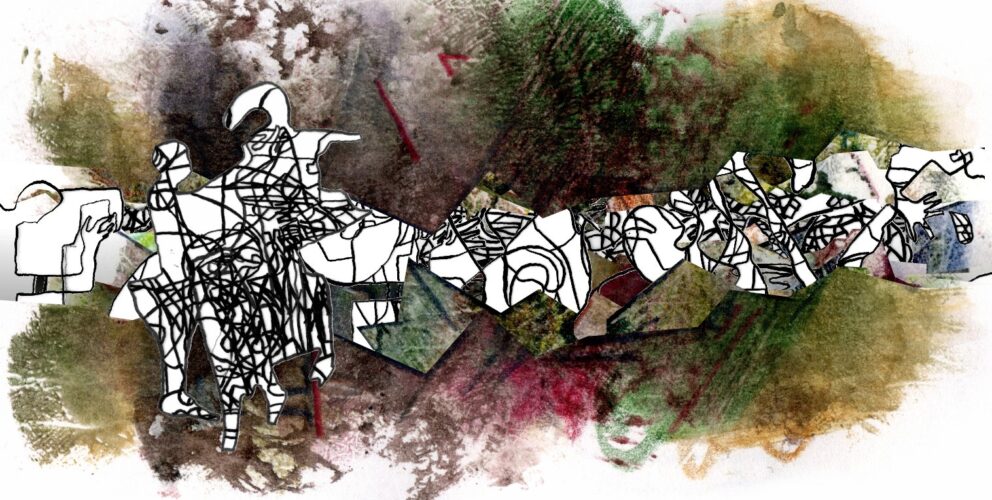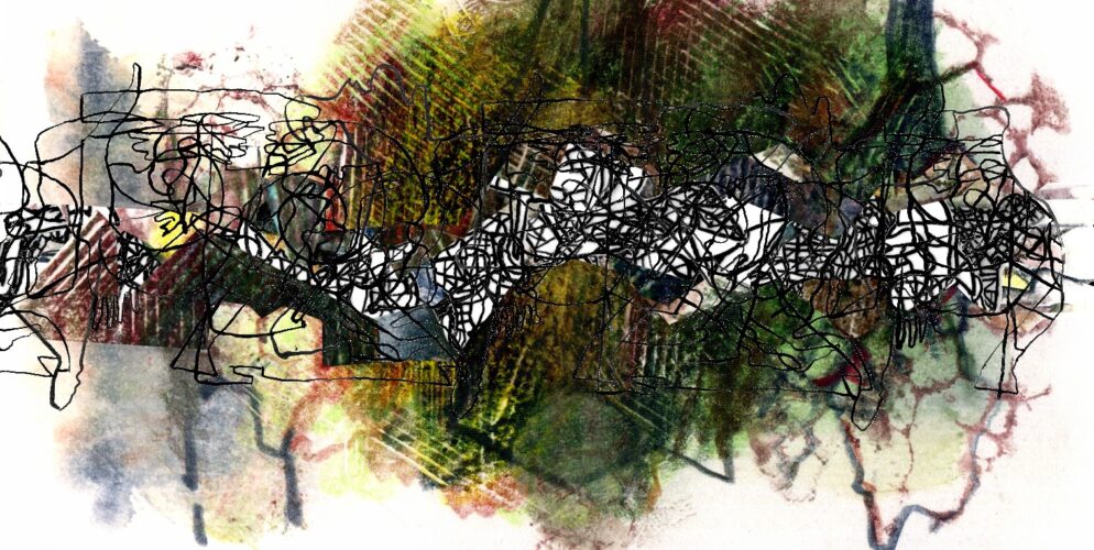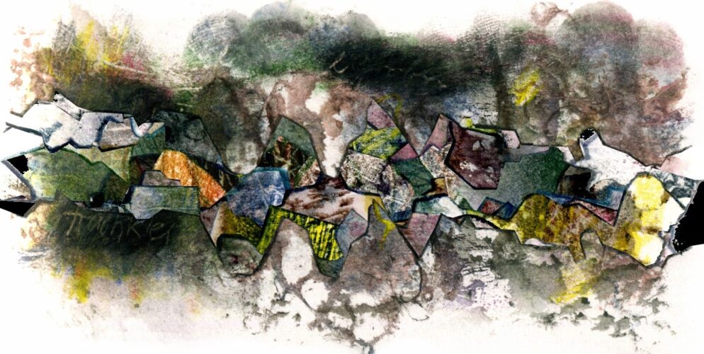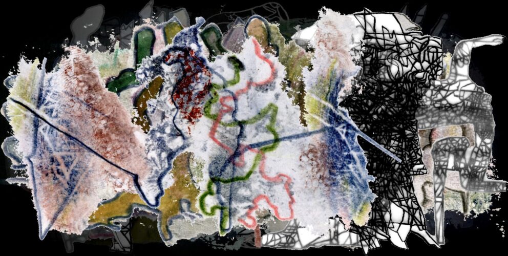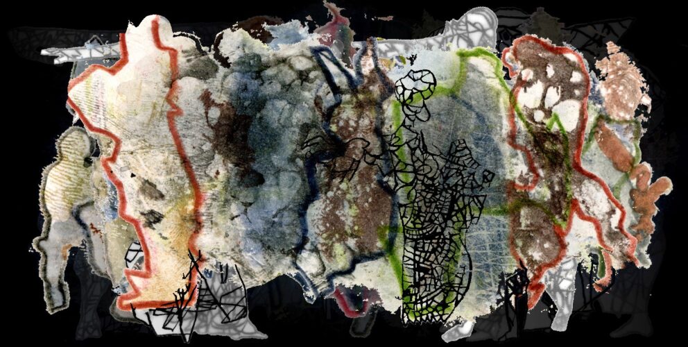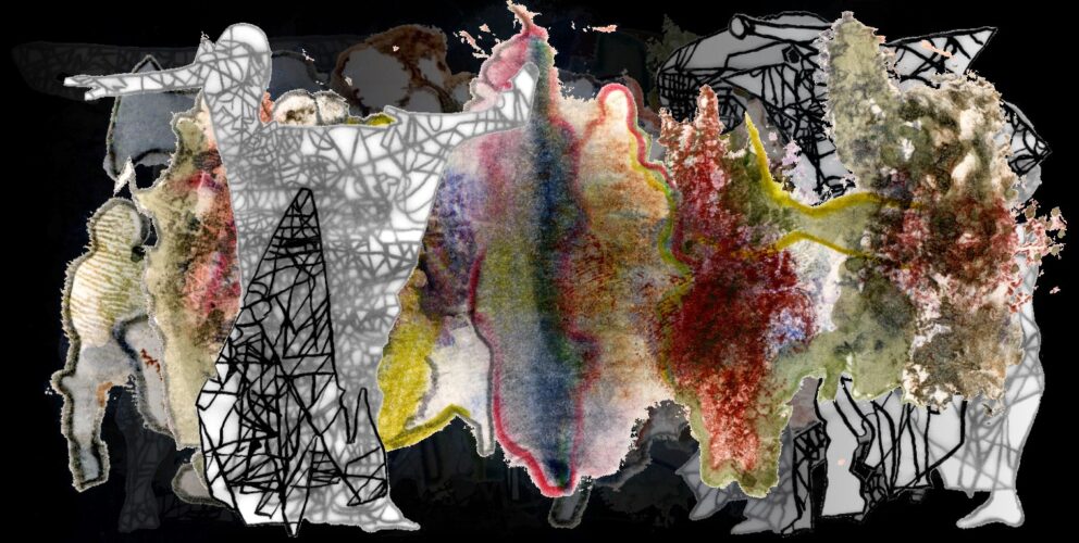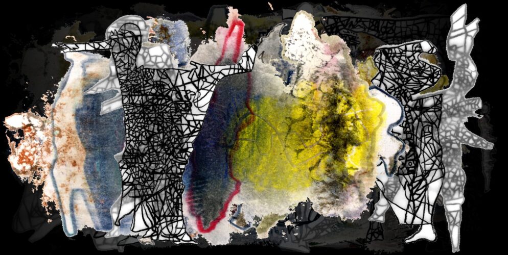 Diagonal über die Wiese des Gustavsburgplatzes, zum Stamm der Vaganteneiche hin, bildet sich ein Pfad, den ich fast täglich viermal begehe, um dem Baum zuzuhören. Manchmal spricht er schon im Näherkommen, und gleich bei der Ankunft kann das aktuelle Wort aufgeschrieben werden. Bei Ursula Krechel las ich gestern von den Lautmalereien die Kurt Schwitter in einem englischen Internierungslager schrieb. Die Worte des Baumes wären auch beziehungsreiche Sockelgestaltungen für die Tanzfiguren.