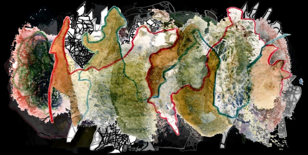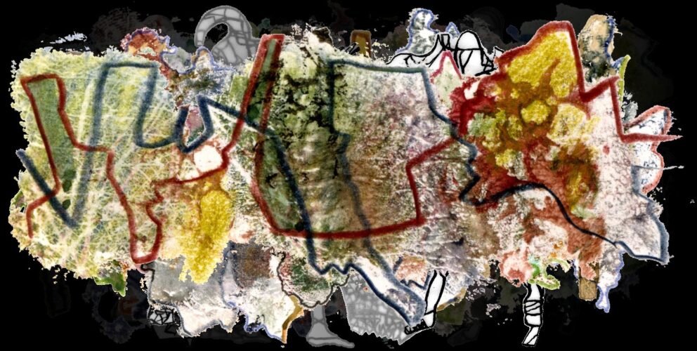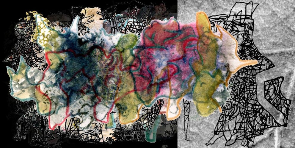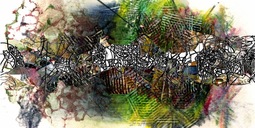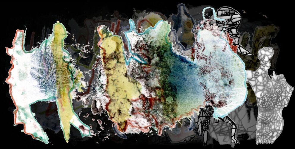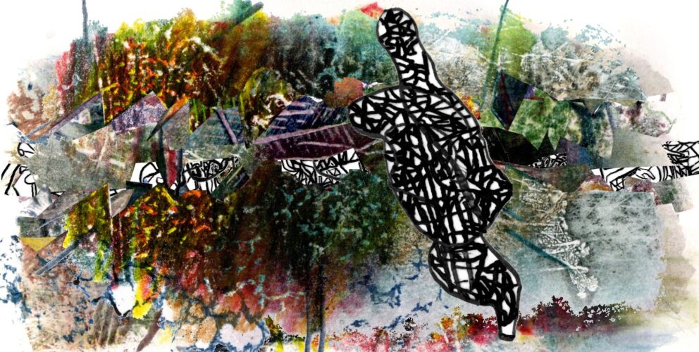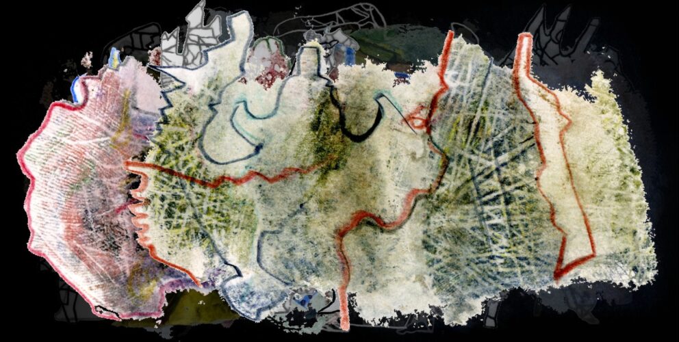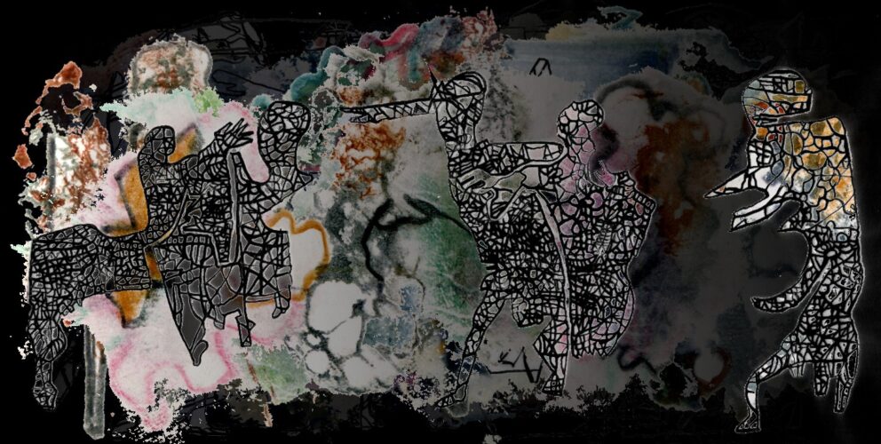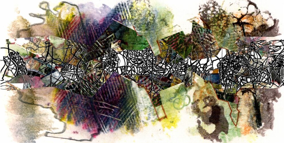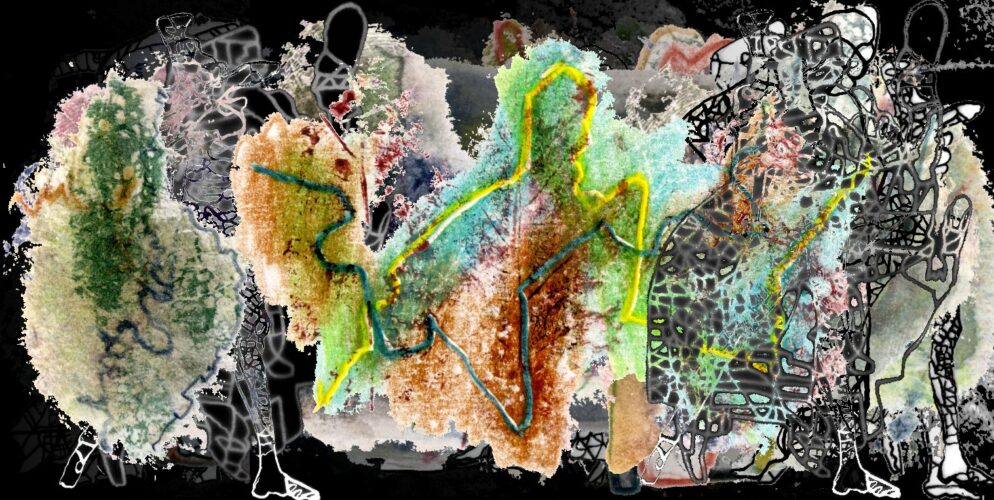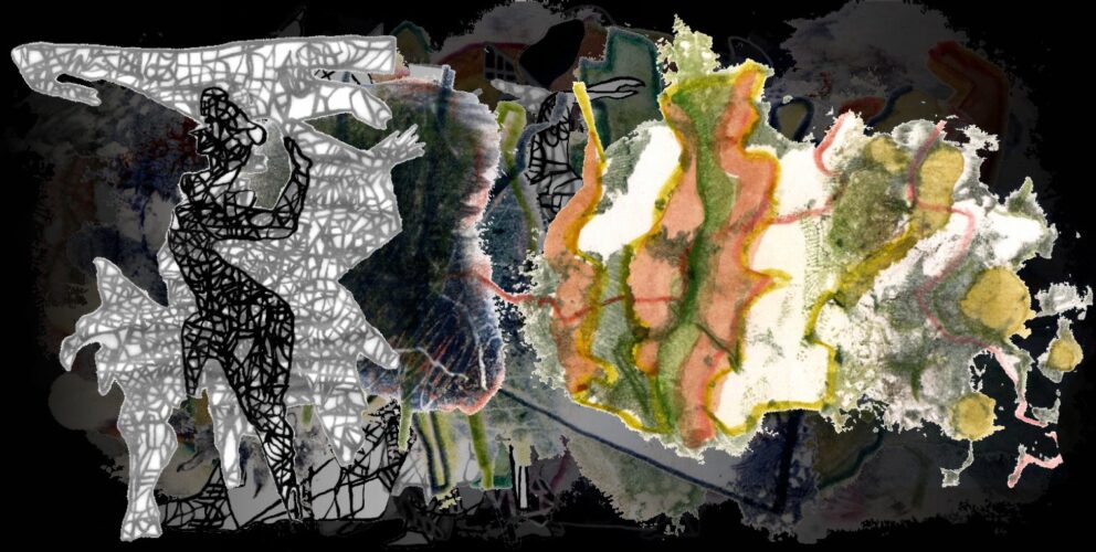 Diagonal über die Wiese des Gustavsburgplatzes, zum Stamm der Vaganteneiche hin, bildet sich ein Pfad, den ich fast täglich viermal begehe, um dem Baum zuzuhören. Manchmal spricht er schon im Näherkommen, und gleich bei der Ankunft kann das aktuelle Wort aufgeschrieben werden. Bei Ursula Krechel las ich gestern von den Lautmalereien die Kurt Schwitter in einem englischen Internierungslager schrieb. Die Worte des Baumes wären auch beziehungsreiche Sockelgestaltungen für die Tanzfiguren.