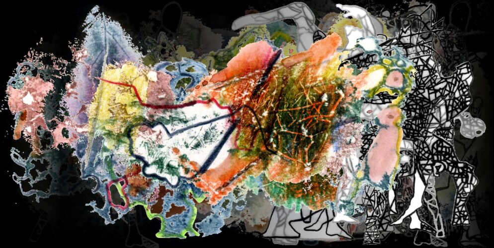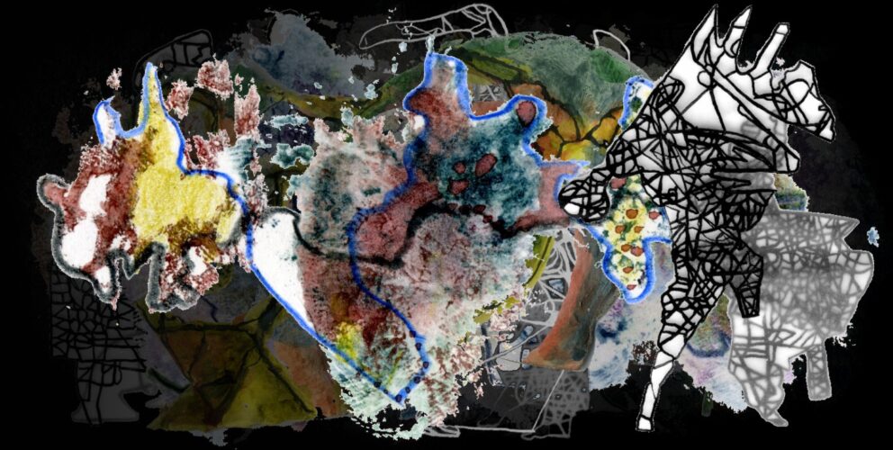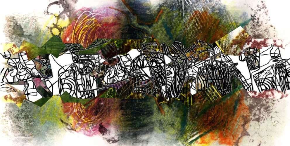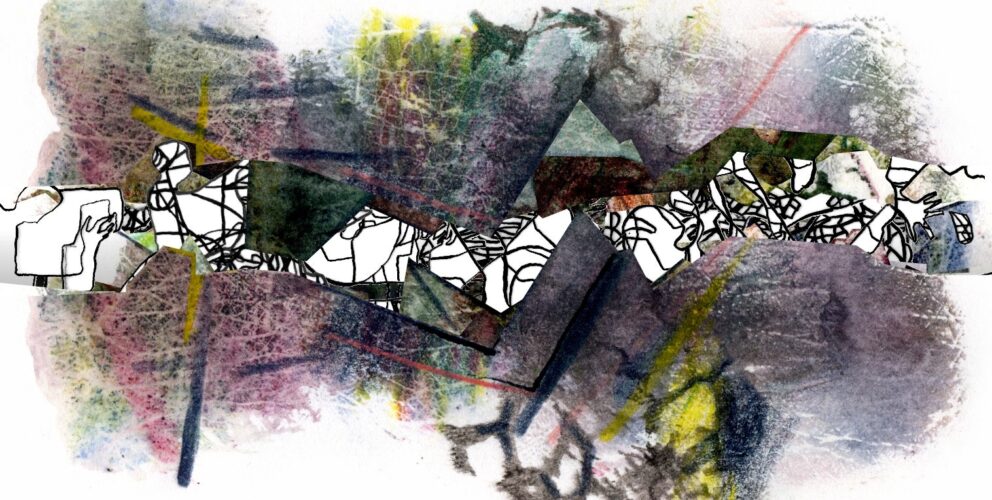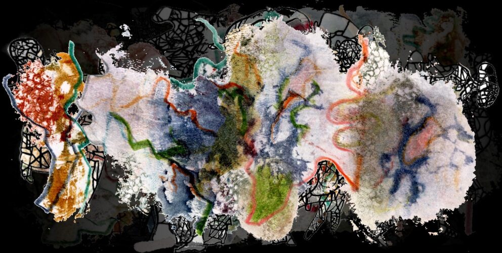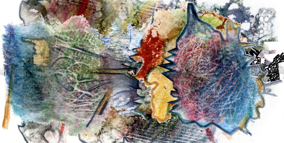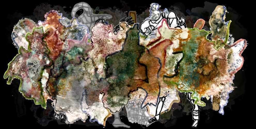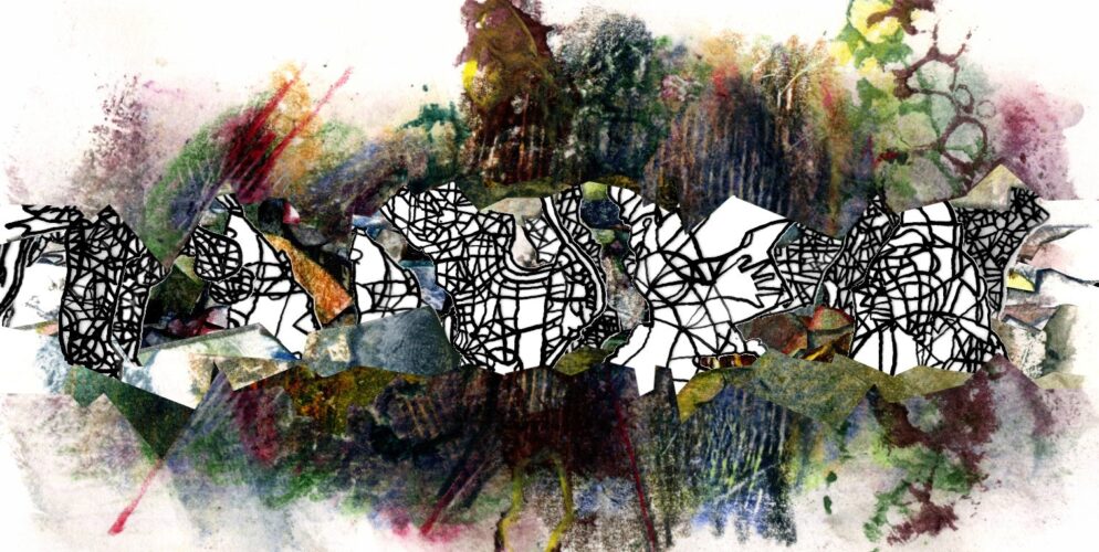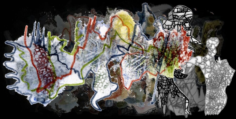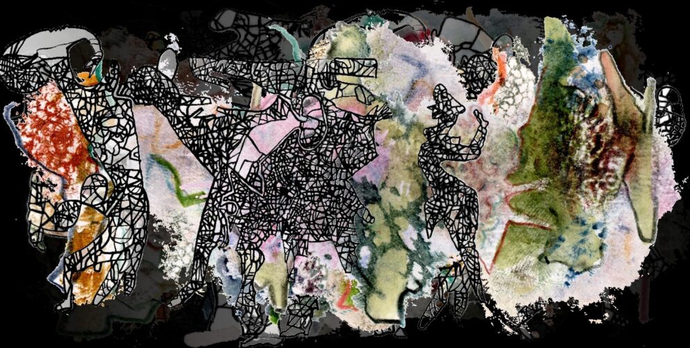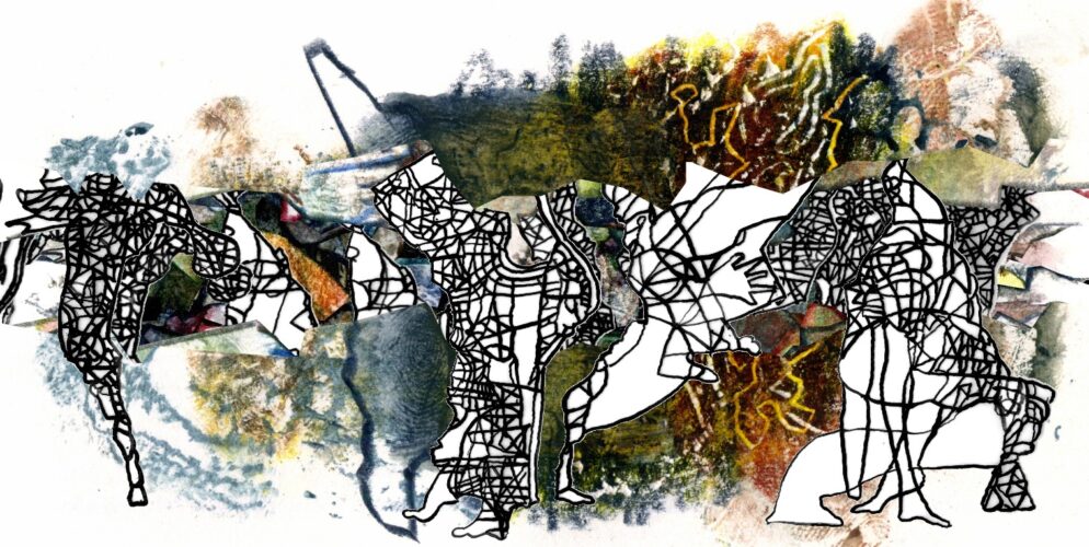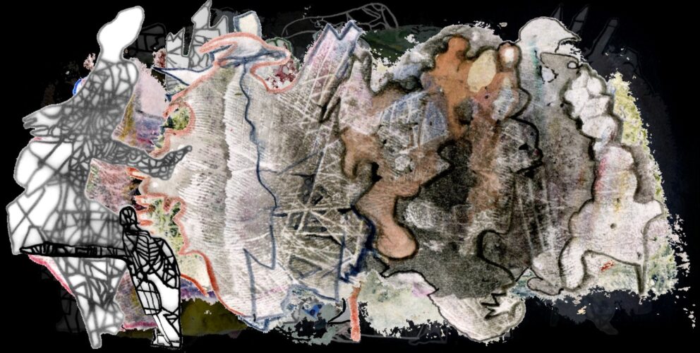 Diagonal über die Wiese des Gustavsburgplatzes, zum Stamm der Vaganteneiche hin, bildet sich ein Pfad, den ich fast täglich viermal begehe, um dem Baum zuzuhören. Manchmal spricht er schon im Näherkommen, und gleich bei der Ankunft kann das aktuelle Wort aufgeschrieben werden. Bei Ursula Krechel las ich gestern von den Lautmalereien die Kurt Schwitter in einem englischen Internierungslager schrieb. Die Worte des Baumes wären auch beziehungsreiche Sockelgestaltungen für die Tanzfiguren.