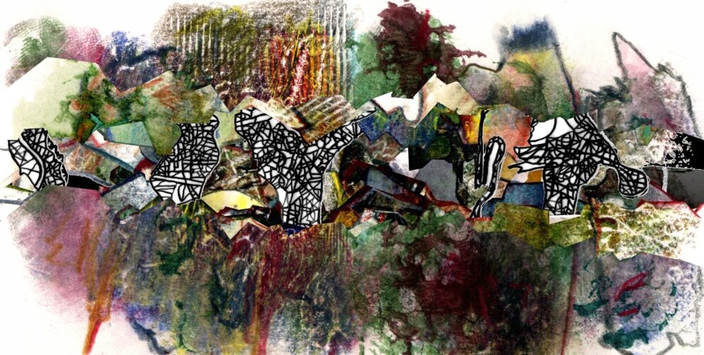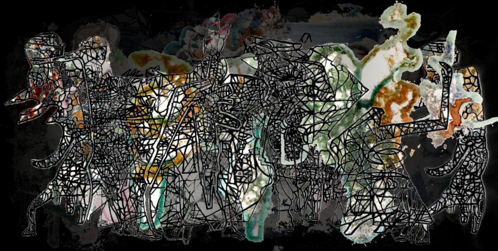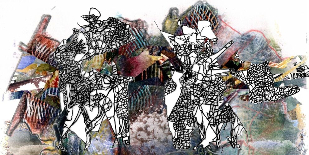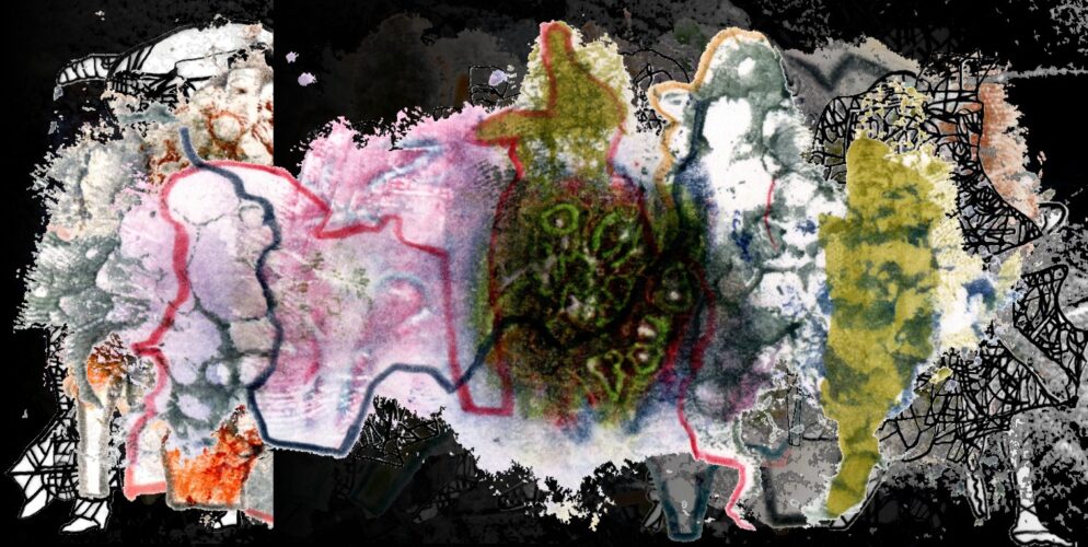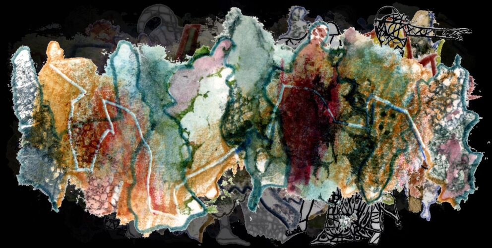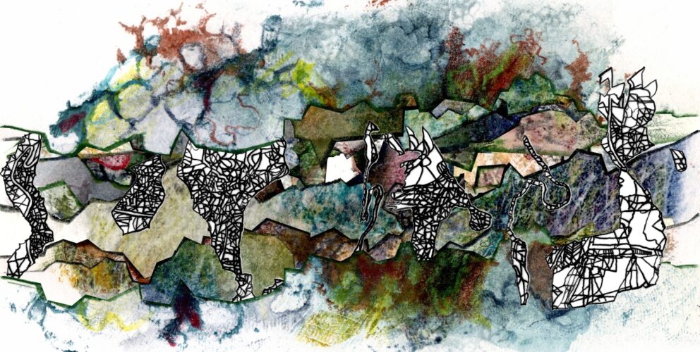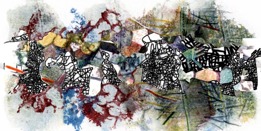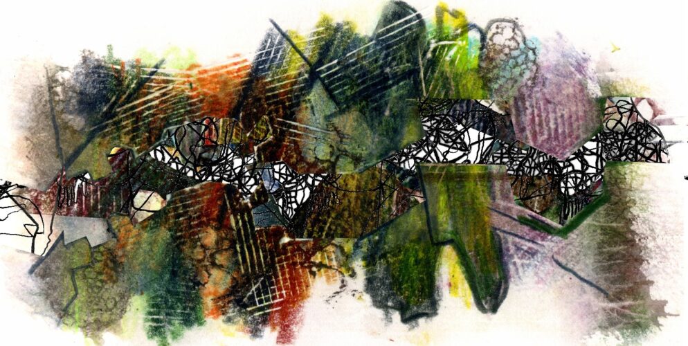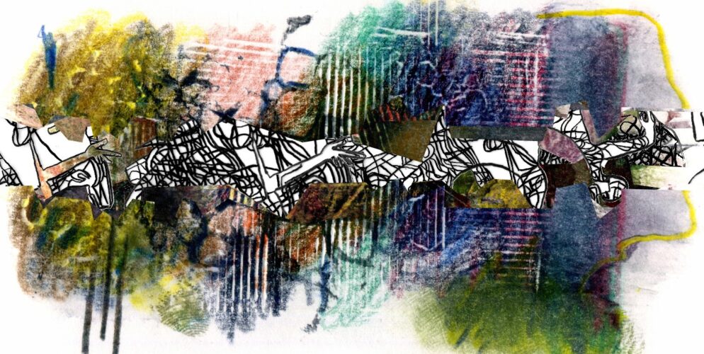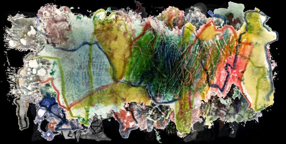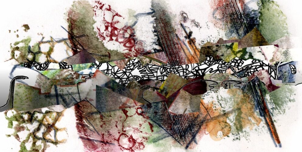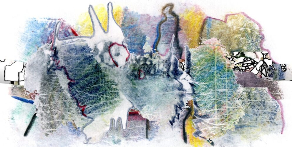 Diagonal über die Wiese des Gustavsburgplatzes, zum Stamm der Vaganteneiche hin, bildet sich ein Pfad, den ich fast täglich viermal begehe, um dem Baum zuzuhören. Manchmal spricht er schon im Näherkommen, und gleich bei der Ankunft kann das aktuelle Wort aufgeschrieben werden. Bei Ursula Krechel las ich gestern von den Lautmalereien die Kurt Schwitter in einem englischen Internierungslager schrieb. Die Worte des Baumes wären auch beziehungsreiche Sockelgestaltungen für die Tanzfiguren.