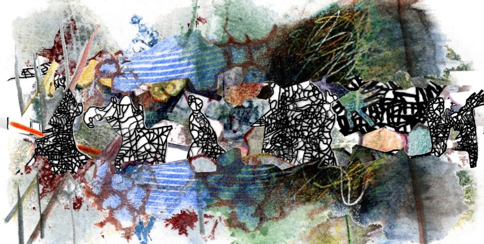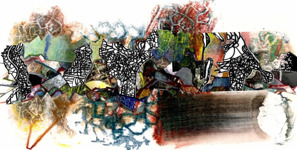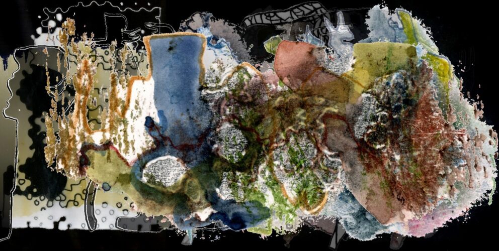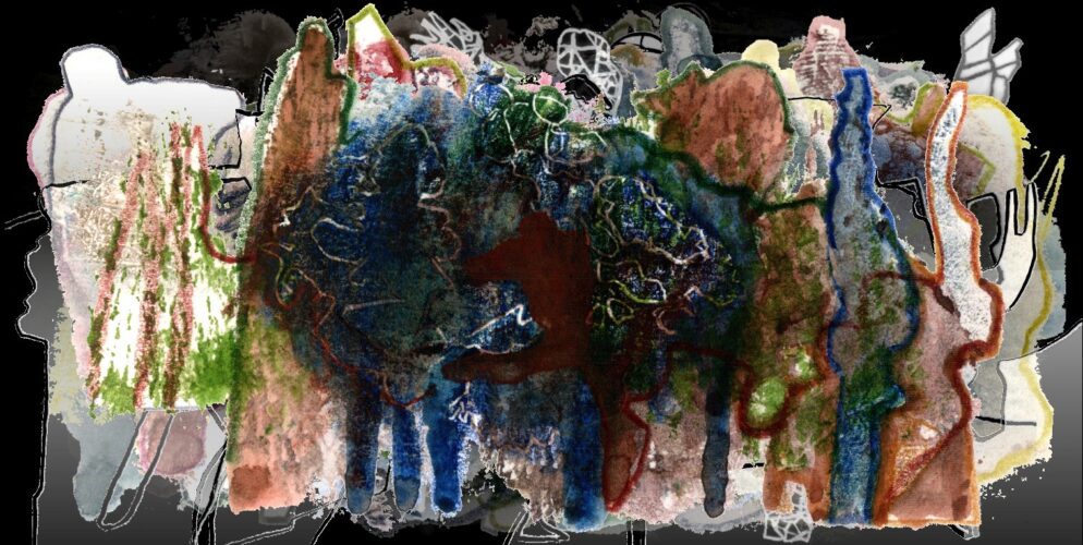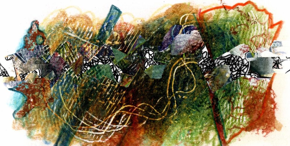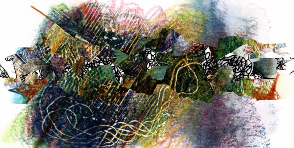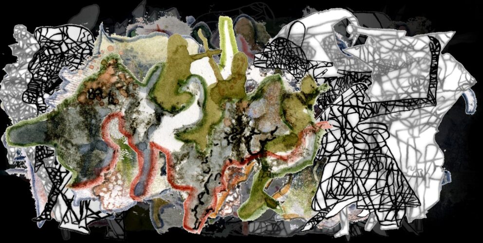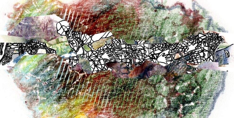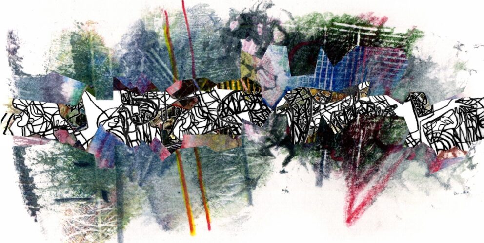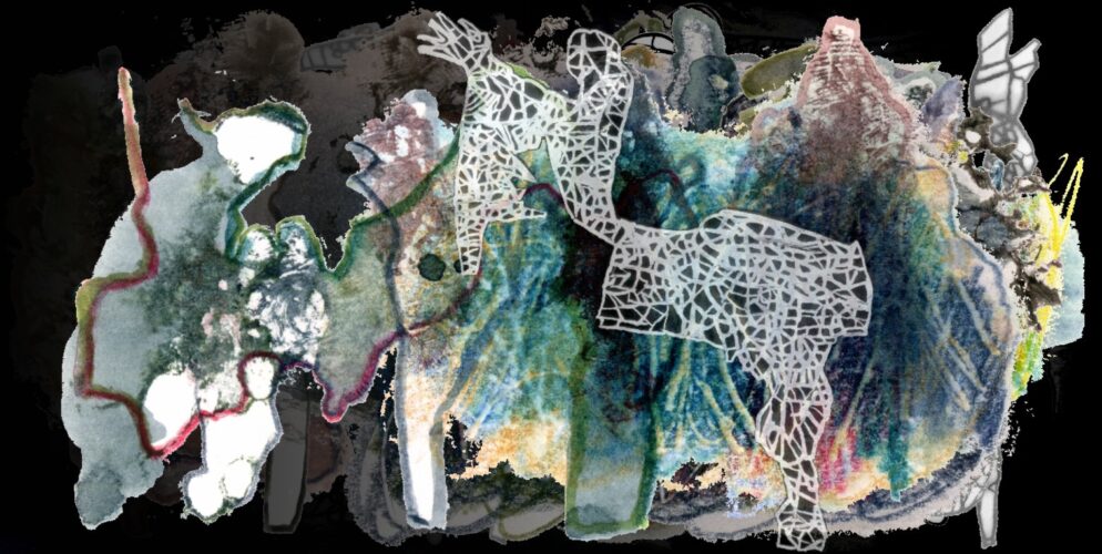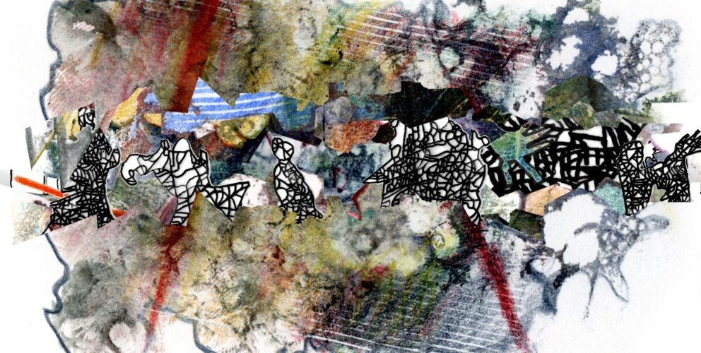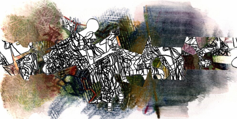 Diagonal über die Wiese des Gustavsburgplatzes, zum Stamm der Vaganteneiche hin, bildet sich ein Pfad, den ich fast täglich viermal begehe, um dem Baum zuzuhören. Manchmal spricht er schon im Näherkommen, und gleich bei der Ankunft kann das aktuelle Wort aufgeschrieben werden. Bei Ursula Krechel las ich gestern von den Lautmalereien die Kurt Schwitter in einem englischen Internierungslager schrieb. Die Worte des Baumes wären auch beziehungsreiche Sockelgestaltungen für die Tanzfiguren.