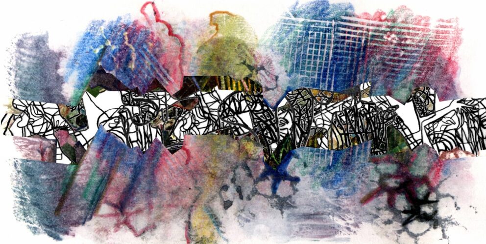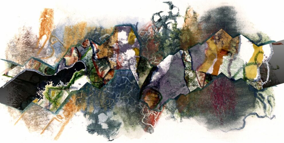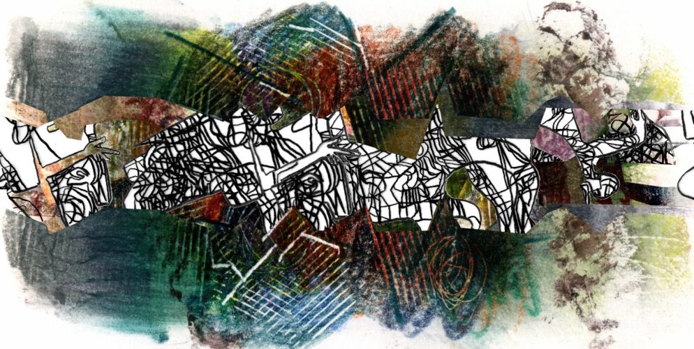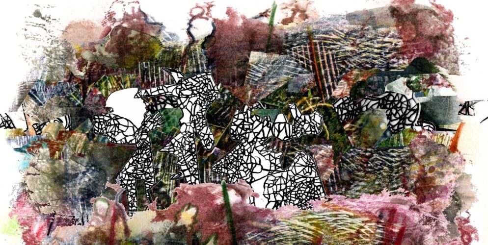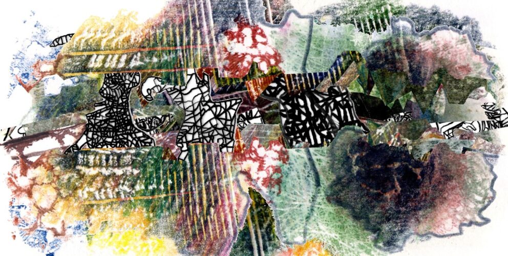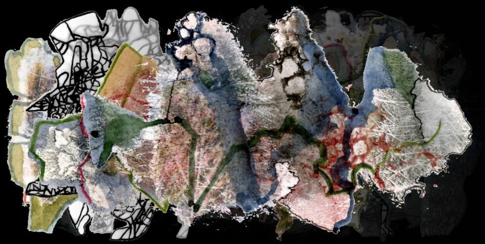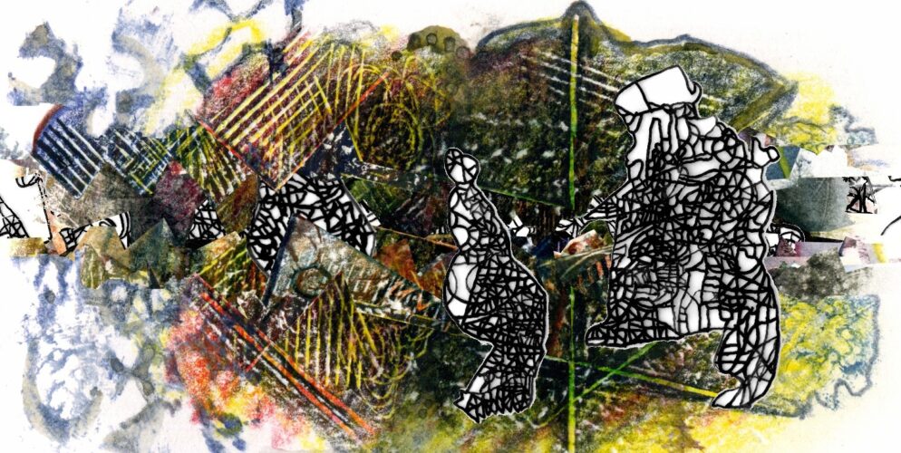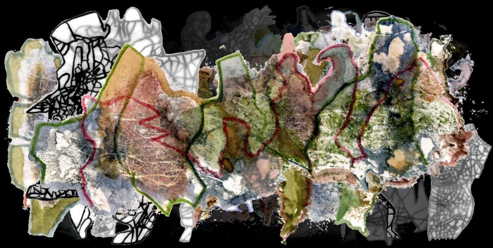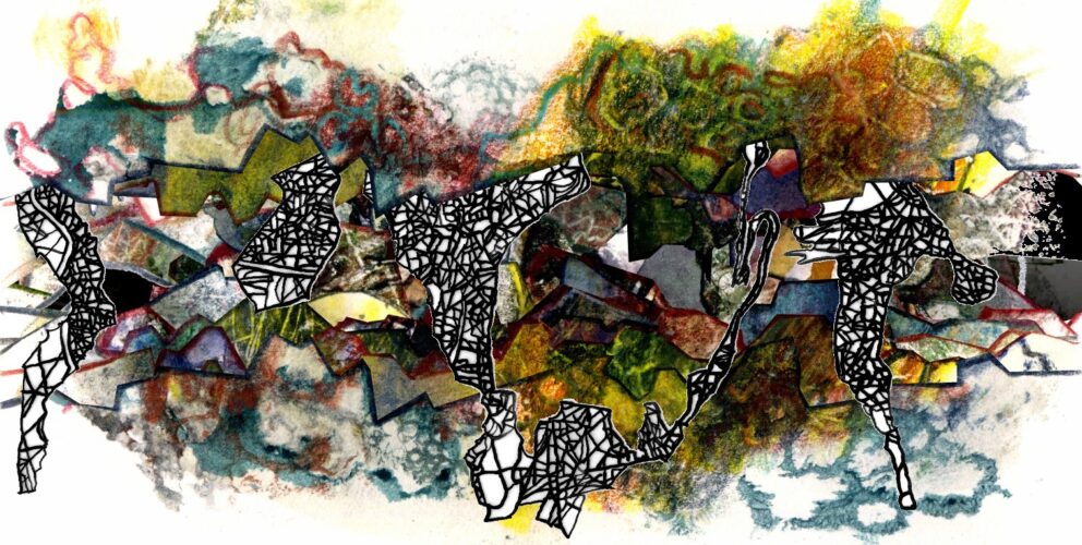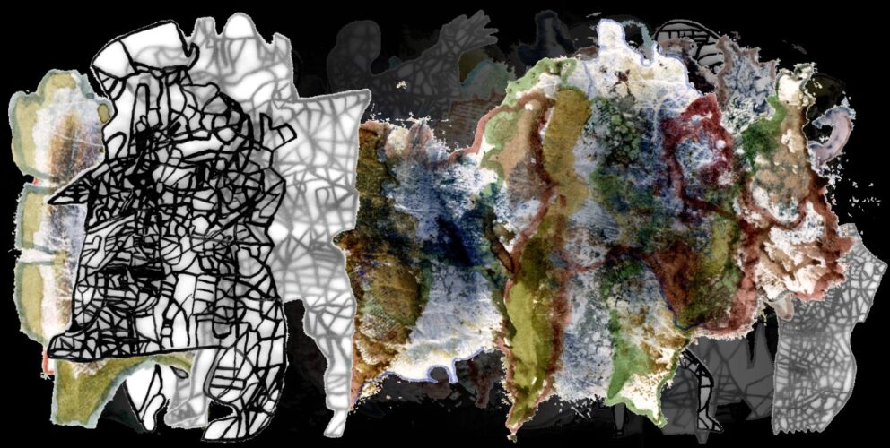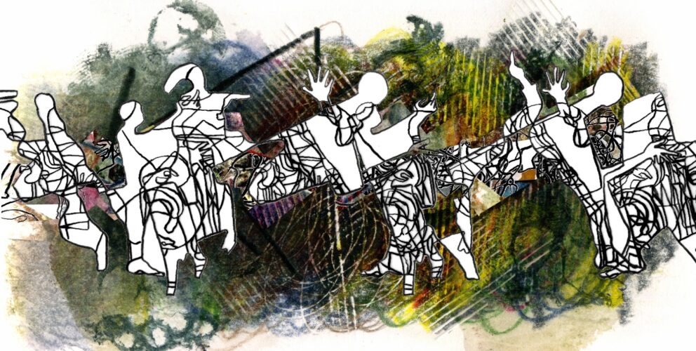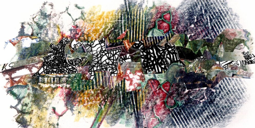 Diagonal über die Wiese des Gustavsburgplatzes, zum Stamm der Vaganteneiche hin, bildet sich ein Pfad, den ich fast täglich viermal begehe, um dem Baum zuzuhören. Manchmal spricht er schon im Näherkommen, und gleich bei der Ankunft kann das aktuelle Wort aufgeschrieben werden. Bei Ursula Krechel las ich gestern von den Lautmalereien die Kurt Schwitter in einem englischen Internierungslager schrieb. Die Worte des Baumes wären auch beziehungsreiche Sockelgestaltungen für die Tanzfiguren.