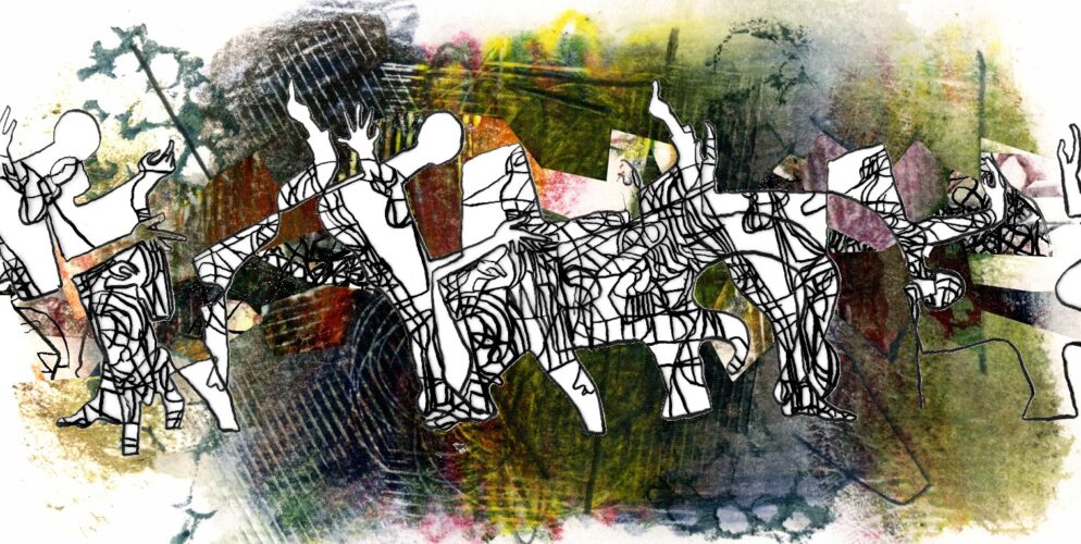 Tanzreigenfries, ein etwas umständliches Wort, aber ein Arbeitstitel. Das Thema bietet verschiedene Objektvarianten. Ein Reliefring mit einer Außen- und einer Innenansicht. Die spiegelverkehrte Reliefwiederholung im Innenbereich ist beiseite gelegt, obwohl sie digital leicht zu erstellen wäre. Es soll bei den alten Techniken bleiben. Und so bietet sich ein Umguss der Form an, in der sie als Reliefoberfläche im Innenring erscheint. Das Ganze setzt sich aus 9 Teilen zusammen, die auch als Einzelfiguren funktionieren könnten.