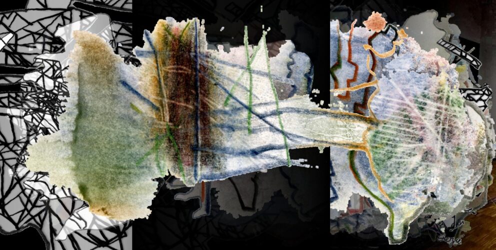 Mit einem Umriss von 16.08. 2023 zeichnete ich gestern die Tabosequenz auf Rolle 11 weiter. Dabei gerate ich mit der Zeichenfeder, wenn ich nicht absetzte, ins Schreiben der vielen Schichten des Liniengeflechts. Schon gestern dachte ich an Texte, die ich dorthinein zeichnen könnte. Solche vielleicht, die sich mit dem Kraftfeld der Museumsinsel in Berlin beschäftigen.