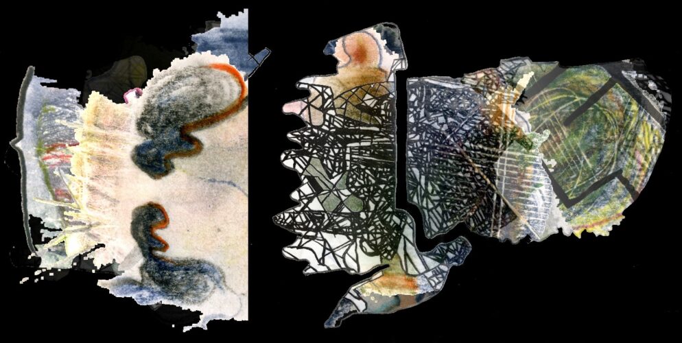Jetzt hat das gezeichnete Tuschegeflecht eine Dichte, in der sich gut neue Figuren finden lassen. Schon im März traten einige als Leerstellen zwischen den Gesträuchen auf, die ich in diesem Monat noch einmal aufnahm, um sie dicht zu füllen. Ich achte auf sie, denn ich weiß nicht, aus welcher Richtung ein Echo aus der Vergangenheit auf mich treffen wird.